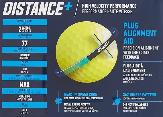 Distance+ de TaylorMade ofrece un rendimiento de alta velocidad para la distancia en todos los golpes. Al combinar un REACT Speed Core y una aerodinamia de alta velocidad y baja resistencia, los golfistas experimentarán una pelota de golf diseñada para la velocidad.