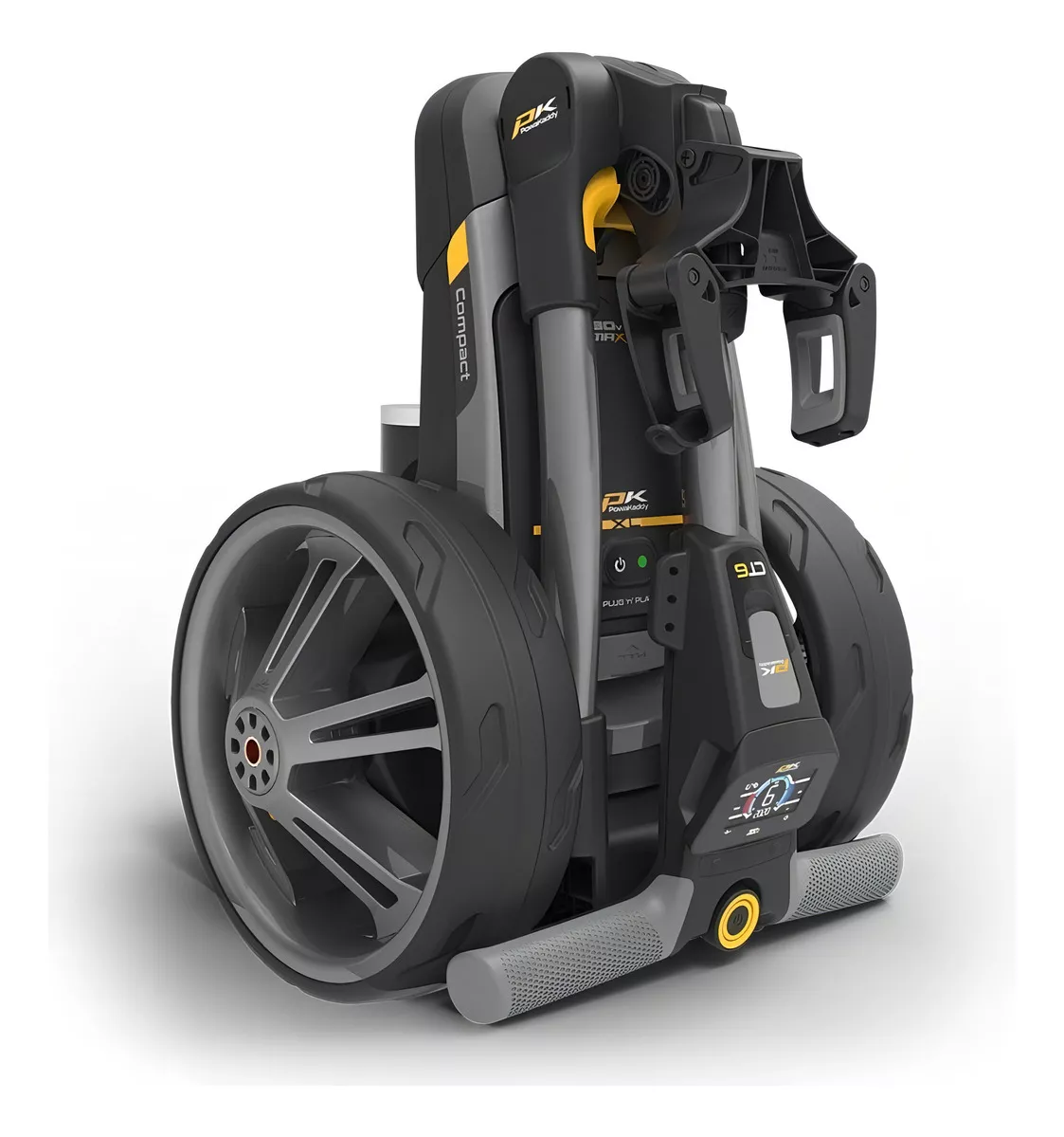 El mango de tacto suave es ajustable en altura, y el chasis Powakaddy Powaframe® de bajo perfil asegura un alto rendimiento. El carro también incluye un control de marcado anti-sabotaje y un sistema de batería High Power Plug’N’Play™ de 30V.